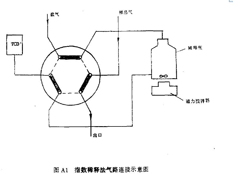 A1.7 由于流量和稀釋瓶容量的測量誤差,將造成指數稀釋法的誤差。當上述兩測量誤差為1% ,試樣濃度稀釋兩個數量級時,濃度誤差為2%; 稀釋至六個數量級時,濃度誤差為6% ,因此本方法不適用于大濃度范圍的試驗。
